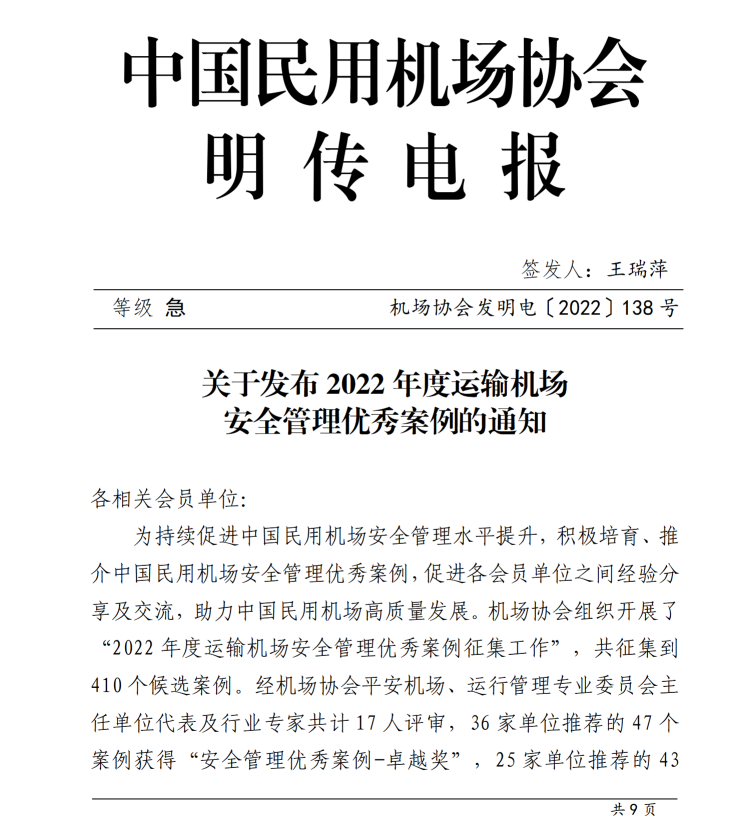 近日,在中國民航機場協會組織展開了“2022年度運輸機場安全管理優秀案例征集工作”。由長沙黃花國際機場報送的“產研學”廣域多波段鳥情監測系統項目從410個候選案例中脫穎而出,榮獲2022年度“安全管理優秀案例卓越獎”。